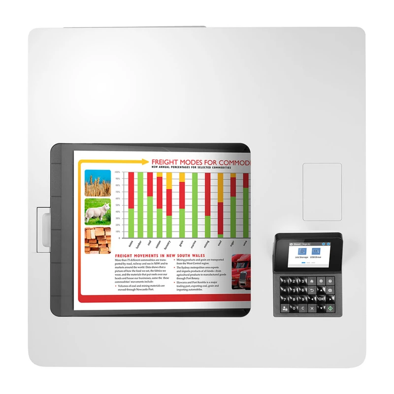 شرکت اچ پی پرینتر لیزری رنگی LaserJet Enterprise M554dn را به سینی 550 برگی، چاپ در ابعاد A4 و قابلیت چاپ دورو مجهز کرده و از این رو برای مصارف اداری و .. با حجم کاری زیاد گزینه مناسبی است. کیفیت چاپ این پرینتر 1200 × 1200 dpi است این رزولوشن با فناوری ImageREt به 3600dpi میرسد که کیفیت فوق العاده ای را برای شما به ارمغان می آورد و میتواند کاتالوگ و بروشورها را با کیفیت بالایی به چاپ برساند و در یک مقایسه کوتاه می توان گفت در مقایسه با هم رده هایش در سطح قابل قبولی قرار میگیرد؛ گفتنی است، قابلیت چاپ رنگی پرینترهای لیزری بههیچوجه با پرینترهای جوهرافشان قابلمقایسه نیست. این پرینتر رنگی به یک صفحهنمایش 4 خطی رنگی مجهز شده است که کاربری آسانی را رقمزده تا کاربر بتواند در کسری از ثانیه تنظیمات موردنظر خود را اعمال و به چاپ برساند.