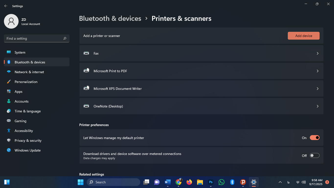 به بخش Bluetooth & devices و سپس Printers & scanners بروید.