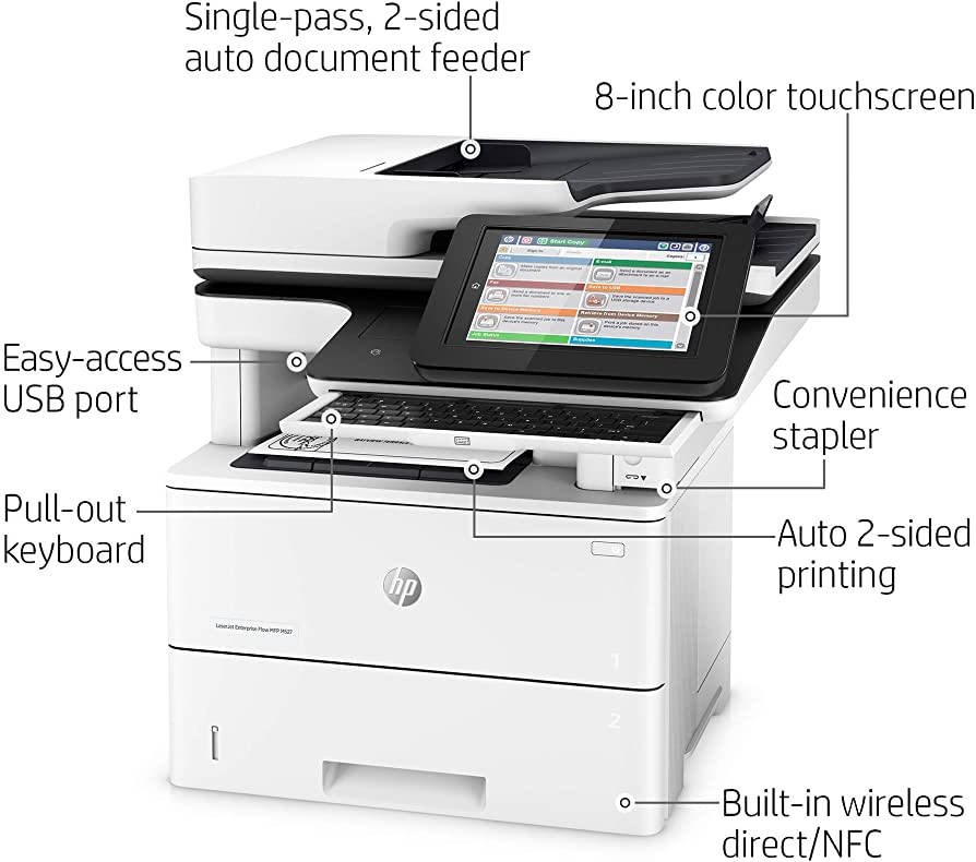پرینتر استوک چندکاره اچ پی مدل HP MFP M527dw یکی از چاپگرهای لیزری حرفهای و قدرتمند است که برای استفاده در محیطهای اداری و تجاری طراحی شده است. این مدل به دلیل امکانات و ویژگیهای متنوعش، به عنوان یک انتخاب ایدهآل برای سازمانها و فضاهای کاری با حجم بالای چاپ شناخته میشود. در اینجا به برخی از ویژگیها و مشخصات این پرینتر اشاره میکنم: