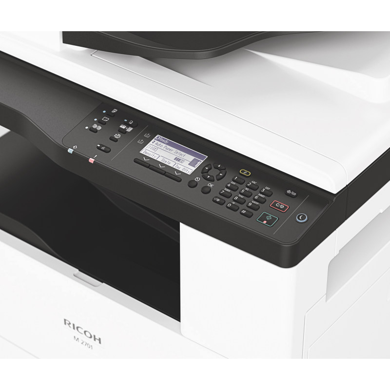 پرینتر (M2701) ریکو از تکنولوژی لیزری بهره می برد و قادر بوده 27 برگ در دقیقه را بصورت تک رنگ با رزولوشن 600x600dpi به چاپ برساند که در مقایسه با پرینتر های هم رده خود کیفیت و سرعتی ایده آلی دارد همچنین سایز چاپ در این چاپگر حداکثر (A3) بوده و از زبان چاپ (GDI)، پردازنده 576 مگاهرتزی و حافظه پرینتر 512 مگابایت برخوردار است که امکان دسترسی به دستورات چاپ از دست رفته را فراهم می کند.