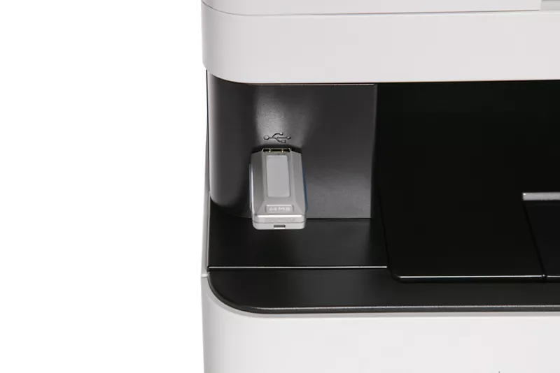 وجود صفحهنمایش لمسی رنگی ۵ اینچی، فیدر خودکار اسناد ۵۰ برگی (ADF) و امکان چاپ مستقیم از USB، کار با دستگاه را سادهتر و سریعتر میسازد. کیفیت چاپ این مدل معادل ۱۲۰۰×۱۲۰۰ dpi بوده و متون و اسناد رنگی را با وضوح بالا ارائه میدهد.